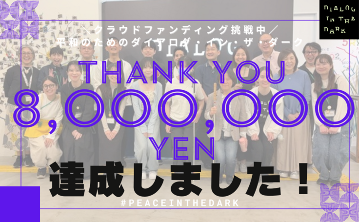 平和のためのダイアログ・イン・ザ・ダーク〜PEACE IN THE DARK〜、クラウドファンディングを開始してから73日。とうとう800万円の目標金額を達成したうえ、ご支援は続いており、900万円にちかい金額が集まっています。