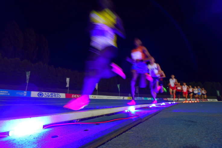 ハイライト/ライブ配信/リザルト最終レース20:25にスタートした男子10000mA組。ナイターのレースではウェーブライトがより見やすく、競技場が鮮やかに。