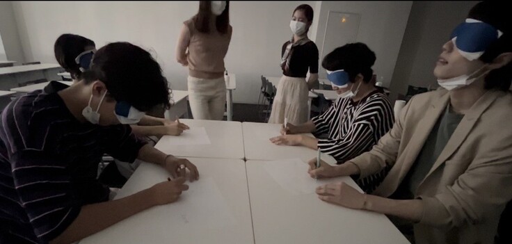 人間が情報の87%を得ていると言われる“視覚”¹以外の感覚を最大限に使う体験をしてもらいます。アイマスクを着用し、視覚以外の聴覚、触覚、味覚、嗅覚のみで様々な体験をしてもらう企画です(by.明治大学 横田ゼミ&根橋ゼミ)