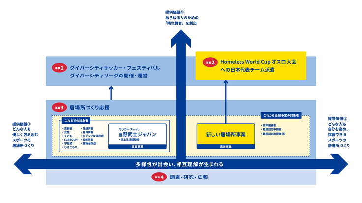 そのため、ホームレスW杯だけをゴールにするのではなく、居場所の運営を通じて日本国内での就職などの機会が広がるための交流を促す仕掛けが必要になります。