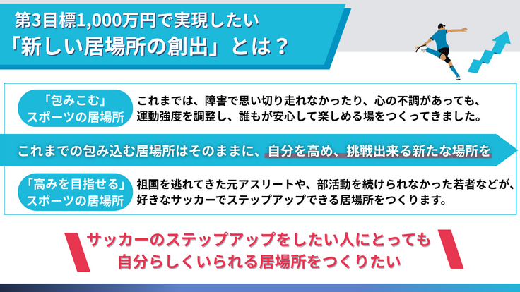 第三目標1,000万円:「高みを目指したい」人たちの継続的な参加とステップアップのための「新しい居場所」の創出