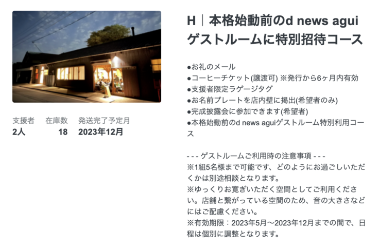 こんばんは、d news aichi aguiを運営している「チーム愛知」の原です。本日は、リターンのコースに含まれている「本格始動前のd news aguiゲストルーム特別招待コース」についてご紹介させてください。