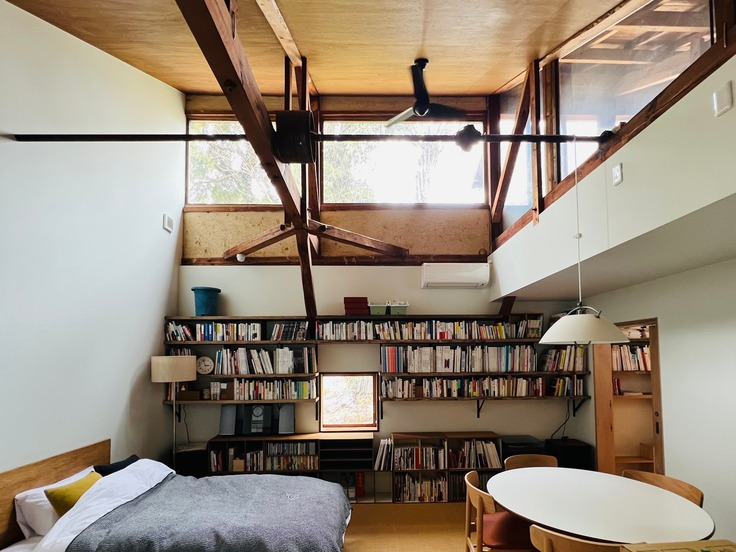 一人で利用したので、最初は正直「さみしい」のでは、と、思っていたのですが、店に通じる扉を全て締め切ると、一つの完全なプライベート空間になり安心。機屋の工場跡の独特なノコギリ屋根は天井も高く、夜空も見えていつの間にか夢の中へ。今度はたくさん仕事を持ち込んで、こもって過ごしたいと思います。