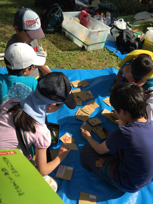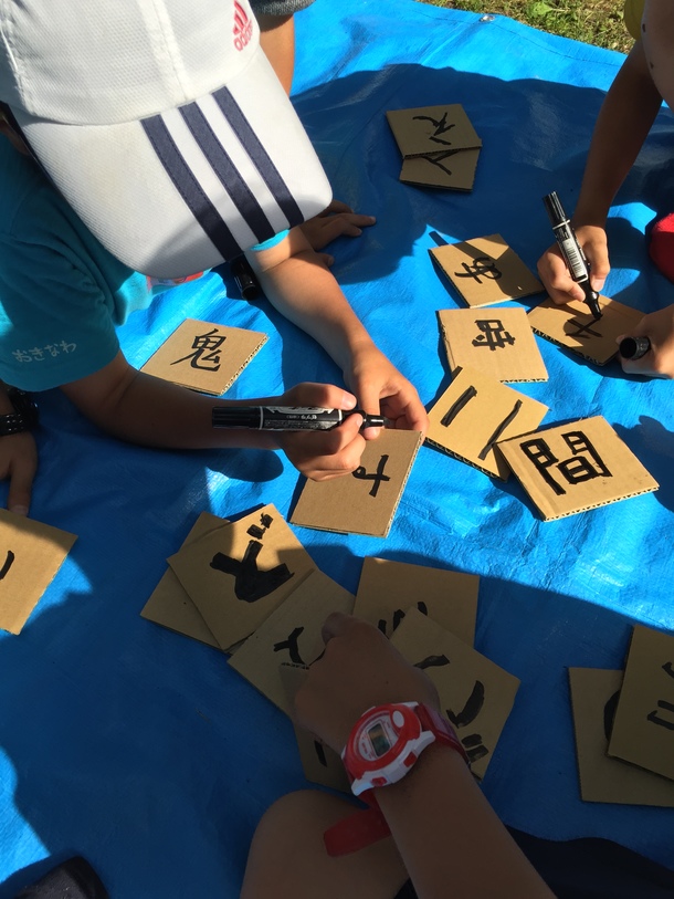 会津子ども劇場さん主催の「 鶴ヶ城! 忍者参上!! -会津子ども劇場の巻き-」に参加した子供達が、講演会当日に展示をする特大パネルに張り出す若松丈太郎さんの詩「神隠しされた街(抜粋)」の文字を書いてくれました。