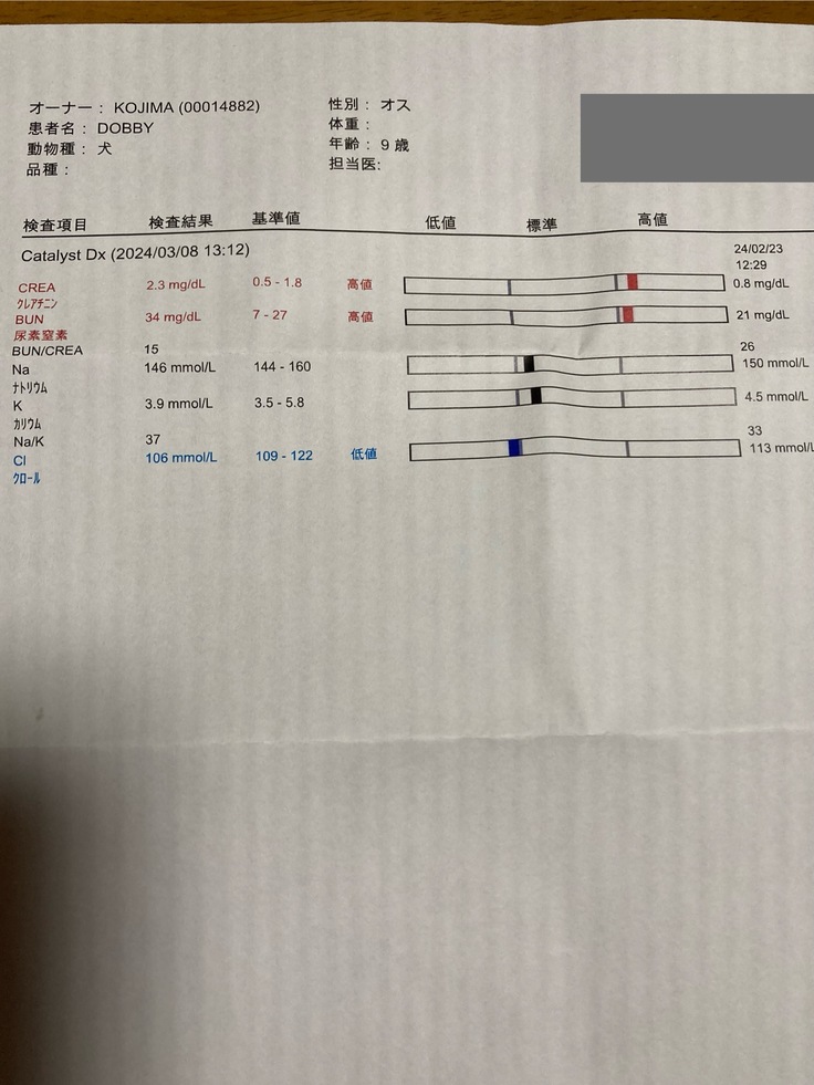 心臓の数値は少し良くなっていましたが、腎臓の数値が一気に上がってしまい