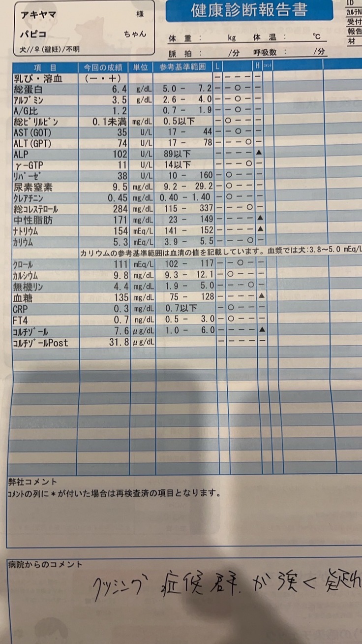 今日 クッシング症候群だとわかりました
