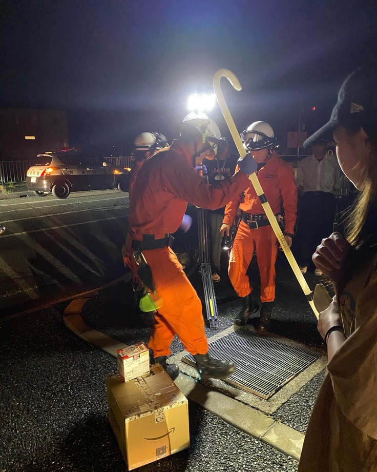 『下水に猫が入り込んで助けれない』と緊急要請が
