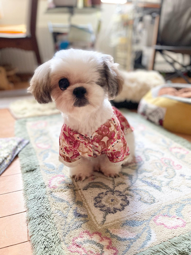 毛並みも良くなり、かわいいお洋服を着せてもらい、幸せに暮らしているマンラッシュちゃん。