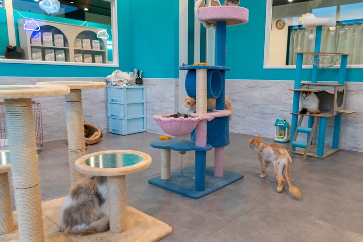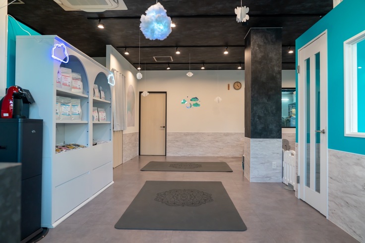 保護犬猫のイメージをよりポジティブにできるように店内も雲の上をイメージしたような可愛い内装になっています☁️🩵