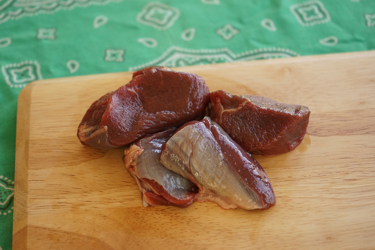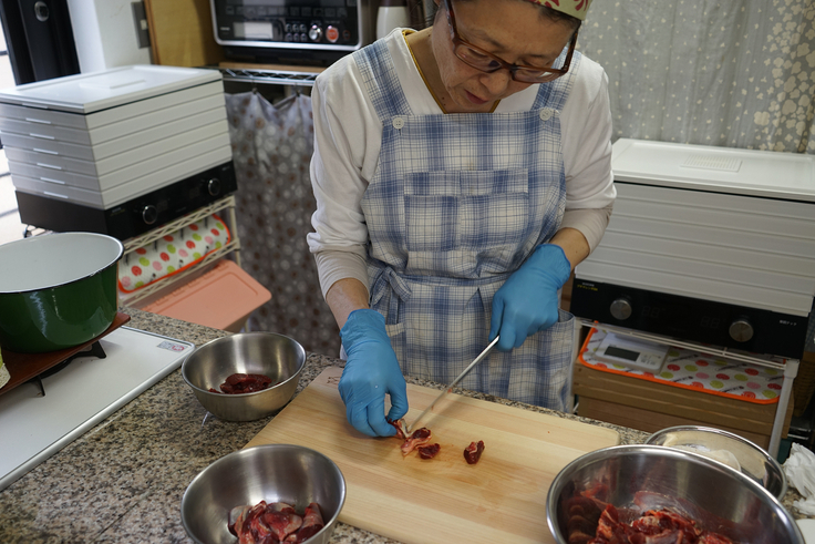 他には、鹿肉をスライスして乾燥させジャーキーに。同じように肝臓、心臓、腎臓、肺をスライスしてジャーキーにします。