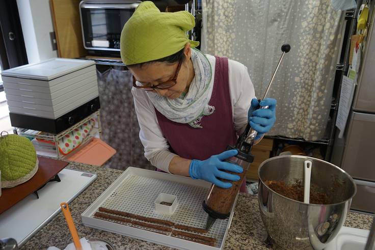 現在、「ひょうごニホンジカ」をメインにした「安心で安全な無添加の犬のおやつ」を自宅で作り、知人や口コミで知ってくださった方に小売りしています。
