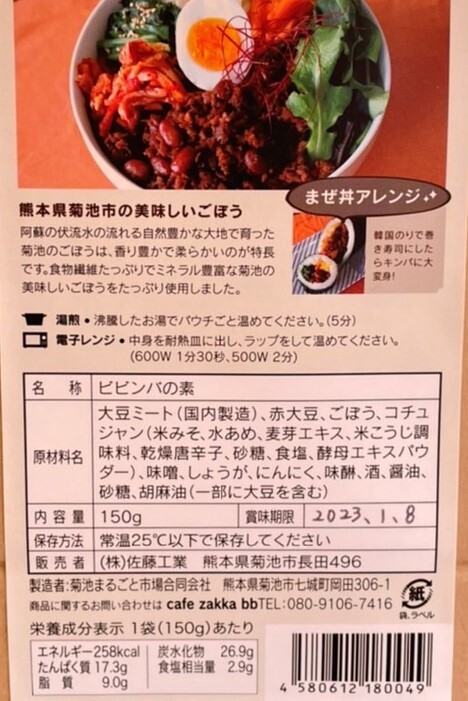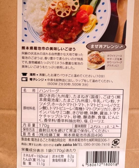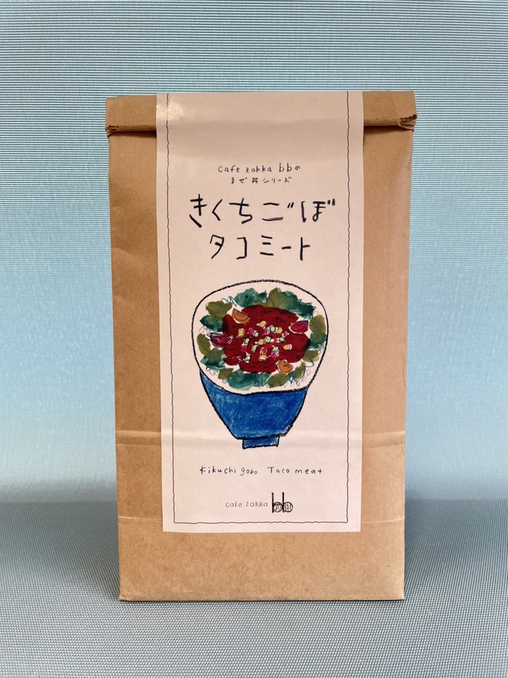 ●cafe zakka bb (名称掲載の許諾を得ています)の「丼シリーズ」はレトルトパックです。3種類とも熊本県菊池市の美味しいごぼうをたっぷり使用し、ごぼう以外の材料も菊池産や九州産、国産の物を使ったこだわりのレトルト食品です。