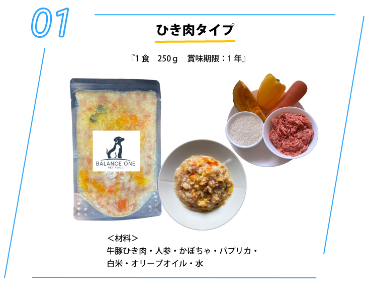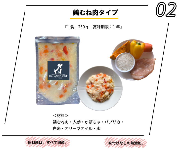 国産の原材料、さらに味付けもしていない素材だけの無添加のペットフードです。レトルト殺菌しているので、長期間の保存が可能。災害時にも利用できます。もともと人が食べても良い安全安心なペットフードです。