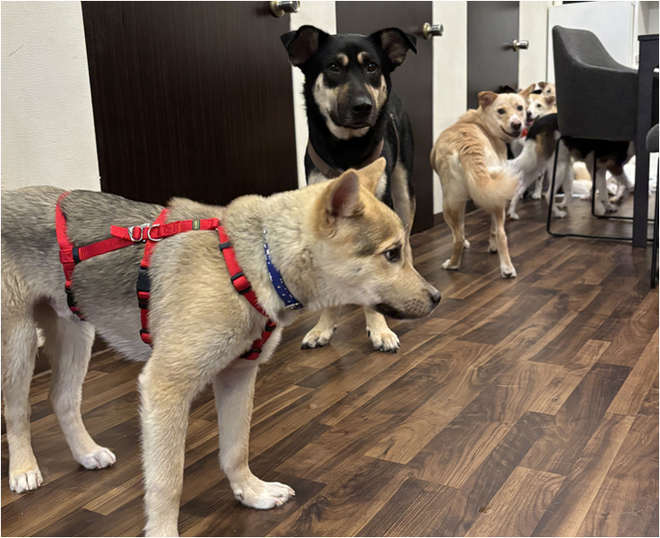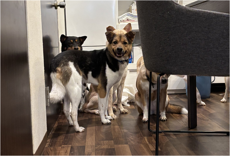 始めは、遠くから見守っていたワンちゃんたちも、時間が経つにつれて、少しずつ私たちのほうに近づいてきてくれました。