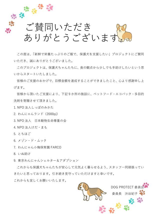 この度は、「新鮮で栄養たっぷりのご飯で、保護犬を支援したい」にご賛同頂きありがとうございます。