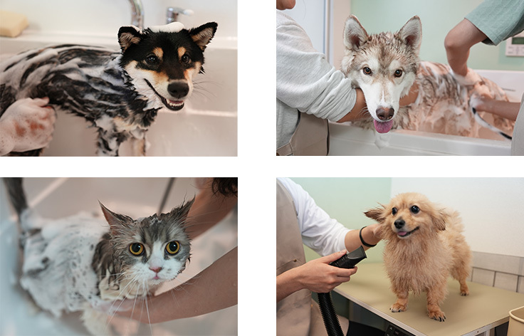 昇降式のドッグバスを導入しているので、かがまずにシャンプーできて負担が少ないと好評です。