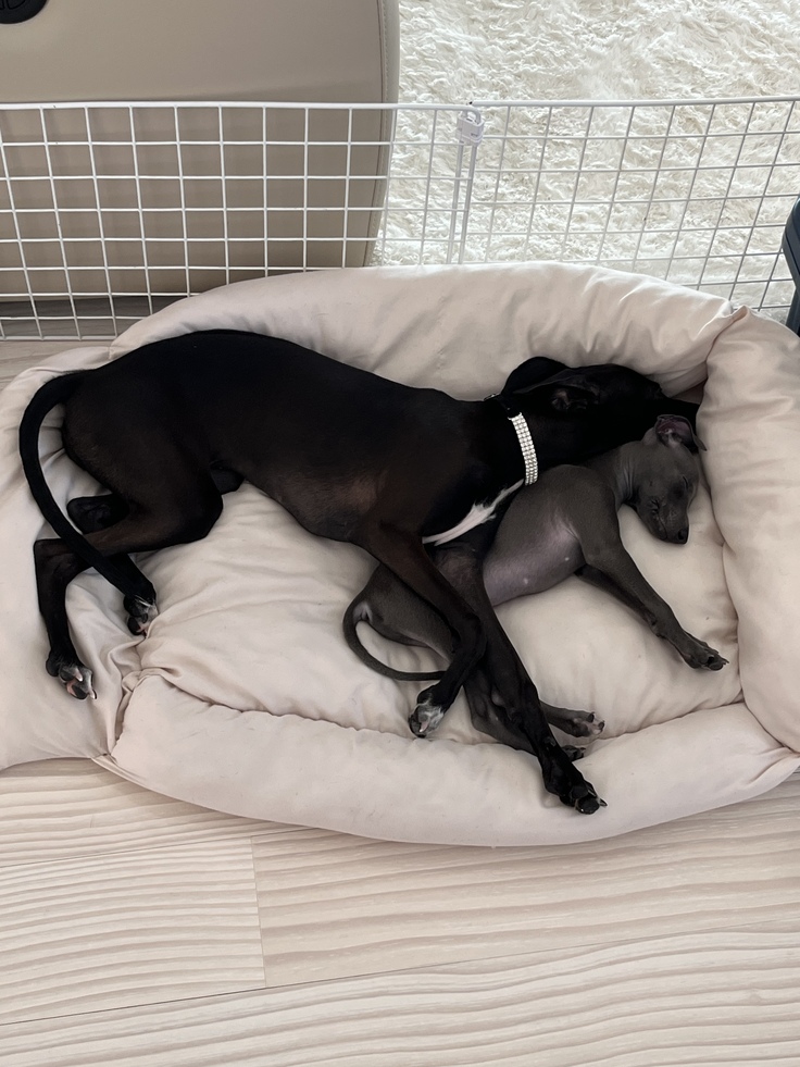 ティアラはすぐにラズリーと仲良くなり、耳や体を舐めてスキンシップをとったり、