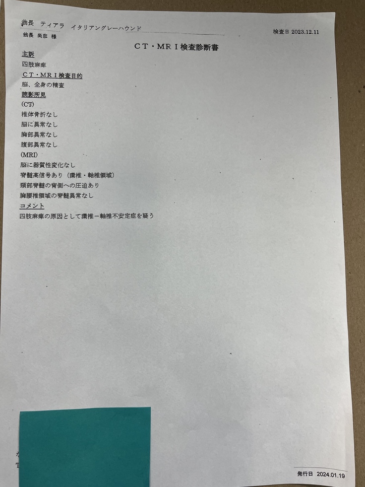 翌日かかりつけの獣医さんにCTとMRIの検査結果をもって相談したところ、