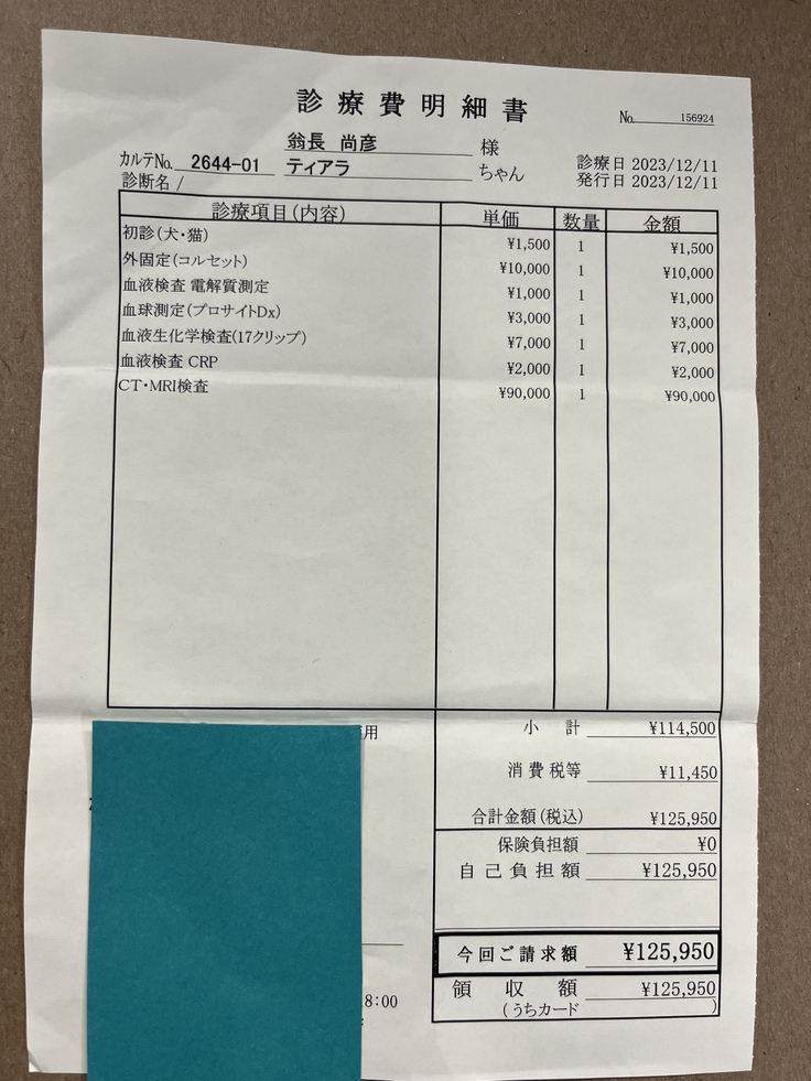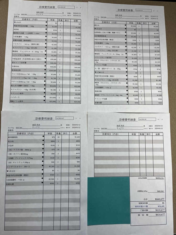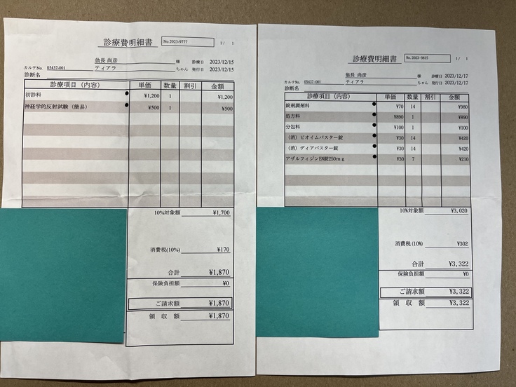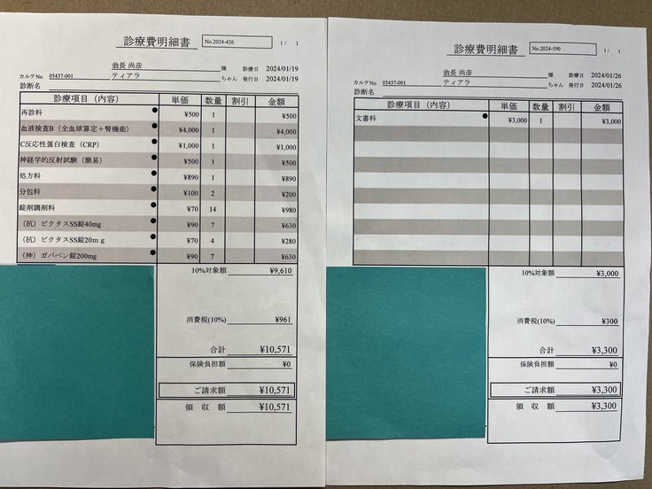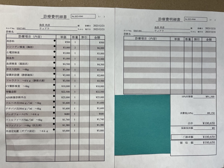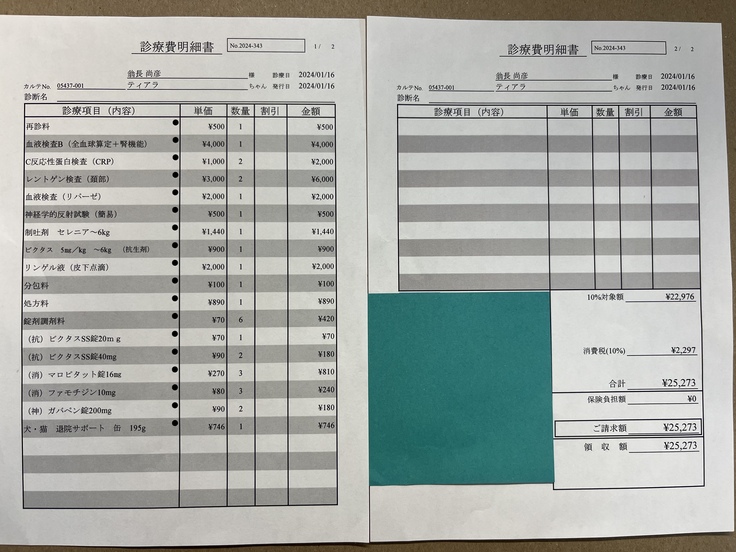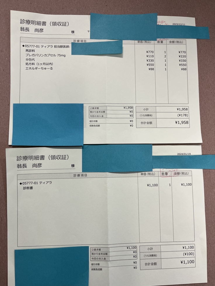 掲載している診断書や診療明細書などの資料は全て動物病院から掲載の許諾を得ております。