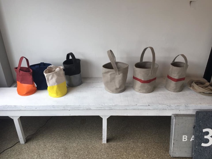 もともとアパレル業に就いてた岩尾さんは、産地に関心を持ち、岡山へ移住。そこで出会った船舶用の防災バケツをリプロダクト。