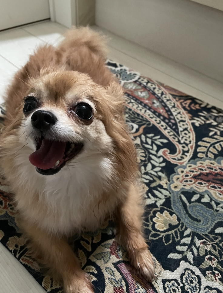 私にいつもぴったりで、キッチンやトイレどこにでもついてきて、仕事に行く時はお見送りをしてくれ帰ってくると玄関で待ってくれています。いつも一生懸命に私のことを見つめてくれます。