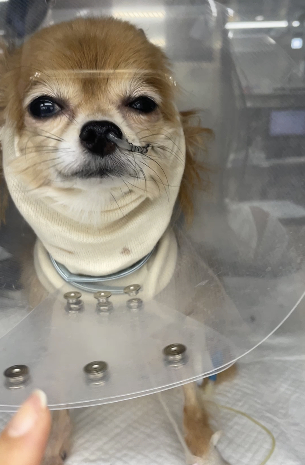 ICUの中からでも私の匂いがするのか、クンクン匂いを嗅いでいるところがとても可愛かったです。