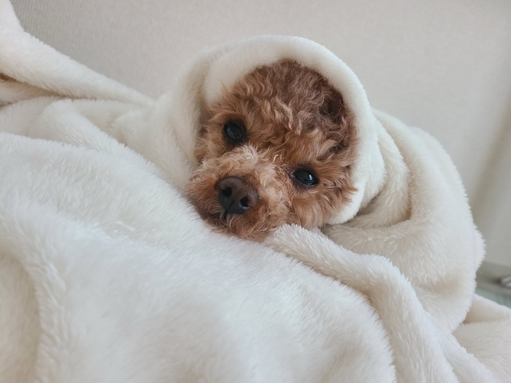 大好きな毛布にくるまり身体を冷やさないよう暖かく過ごしております🌟