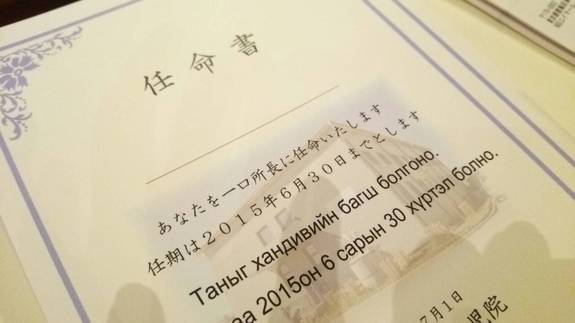 (1万円以上ご寄付いただいた一口所長の皆さまにお届けする、一口所長任命書。