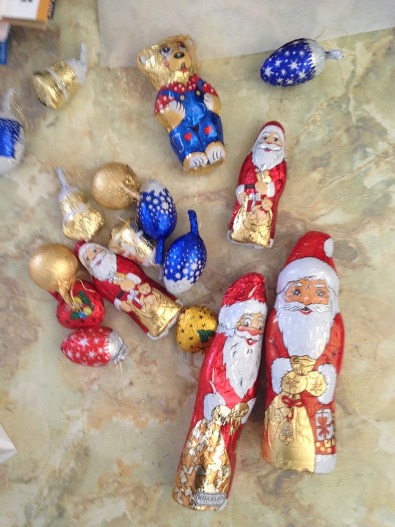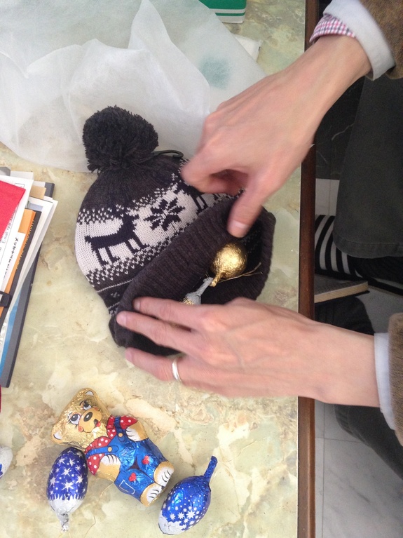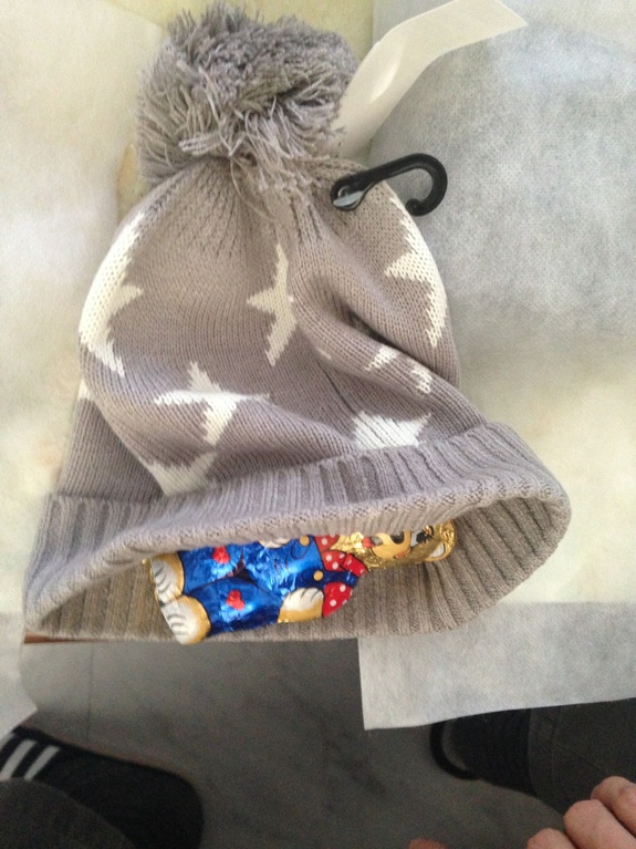 ユニクロのヒートティック帽子にいろんな形のチョコレートを入れました。