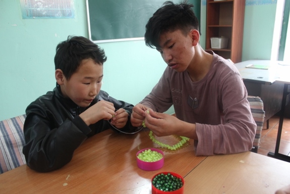 ビーズ製品作成チームは、上の写真の右、トゥムルーがリーダーとなって製作しております。