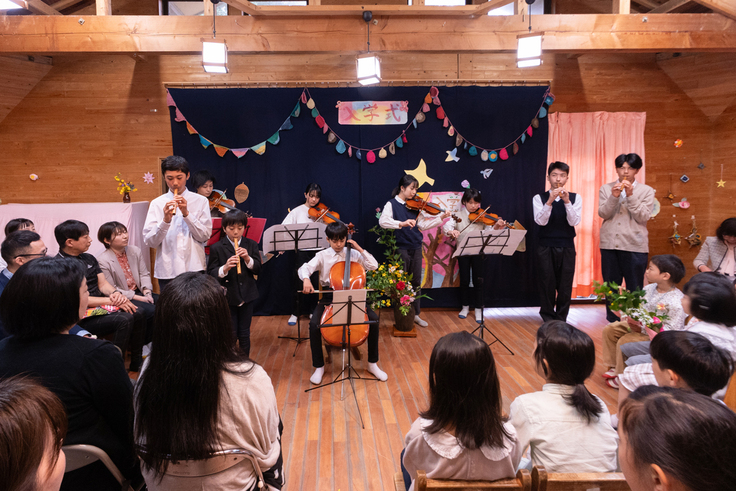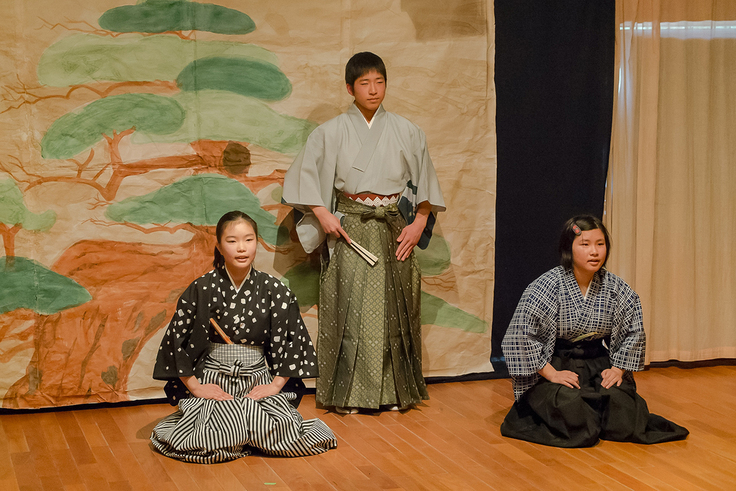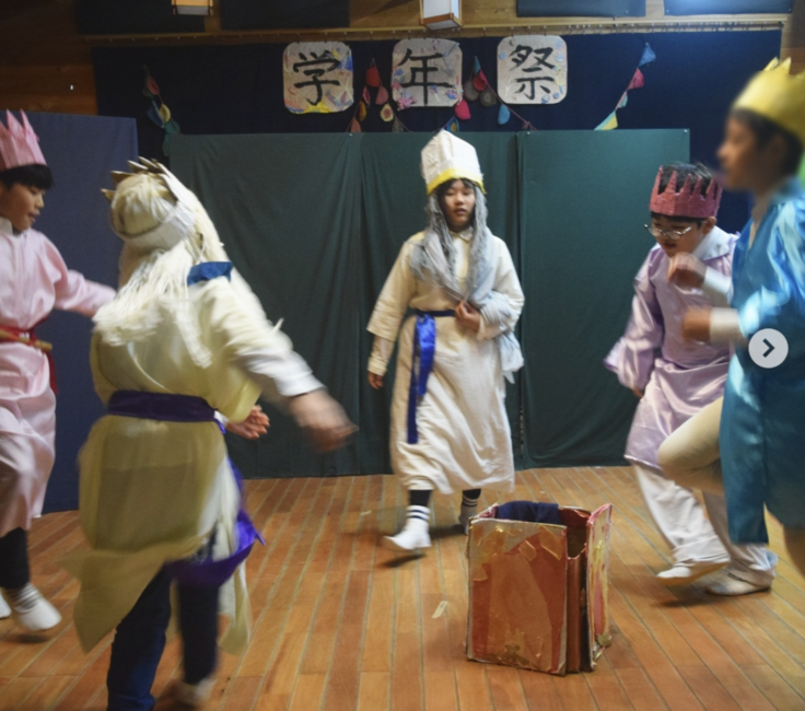 毎年子どもたちが企画・運営する学年祭(どんぐりの学芸会)は、ファンタジーや文学、伝統芸能を自分たちで創作して表現します。