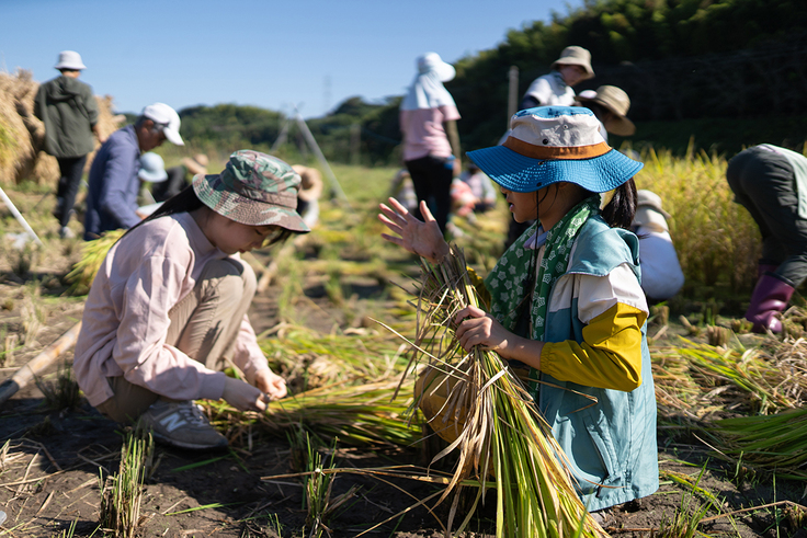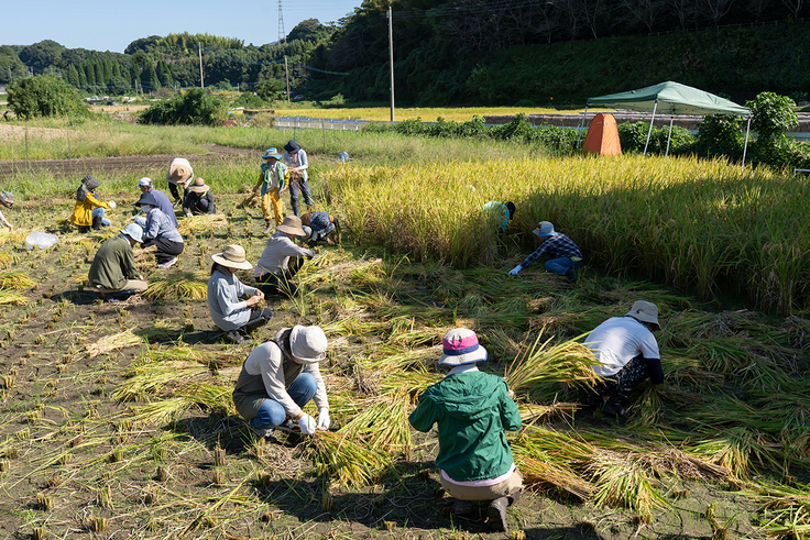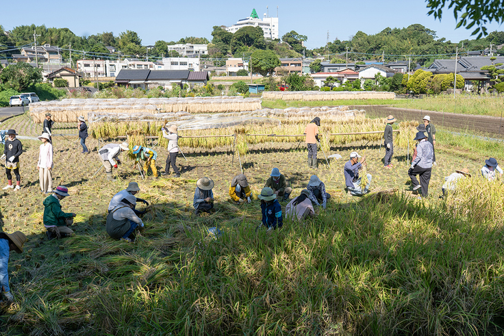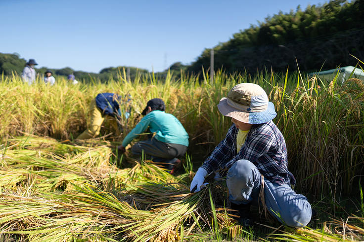 鎌で稲を「ザクッ」っと刈る感触が、気持ちがいい。