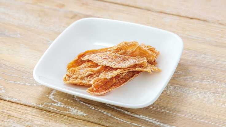 薄くスライスした仔牛肉をじっくり熱乾燥。サクッとカリッとした食感で、手触りもさらさら。持ち運びにも便利で、お散歩やお出かけのお供にも最適です。