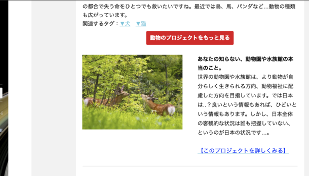 関心のあるジャンル1位「動物」の、注目のプロジェクトになることができました。