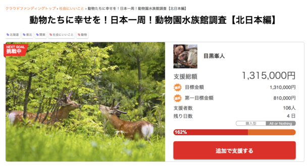 みなさまの力、動物への想いが結集し、ネクストゴールとして実現したことを嬉しく思います。