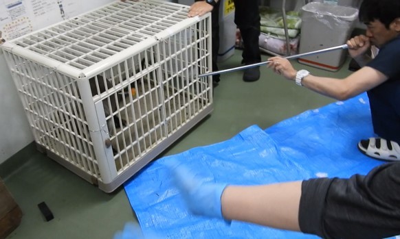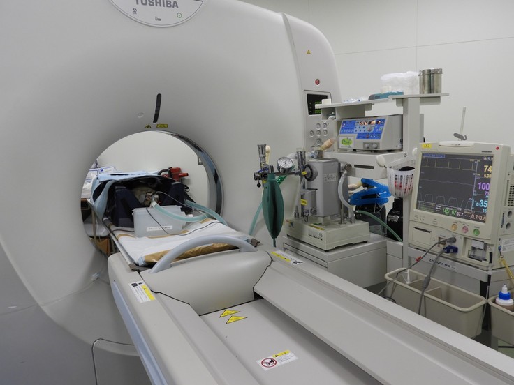 吹き矢で麻酔をかけて、血管確保と気管内挿管の後、造影CT検査を行いました。
