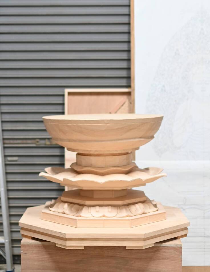 本プロジェクトの要である、本尊様の台座および光背の進捗報告をさせていただきます。