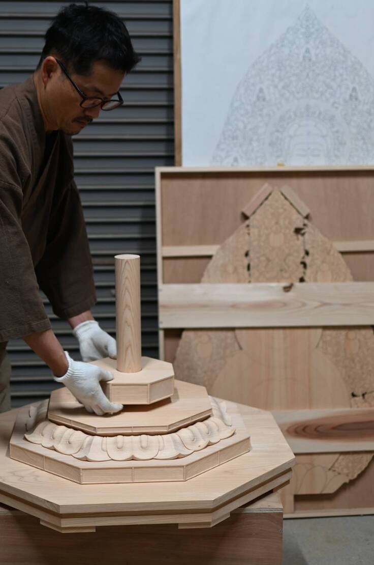 徐々に形作られていく台座と光背。動画で作業風景を写し取ってくださっている記事もあり、その臨場感がこちらまで伝わってきます。