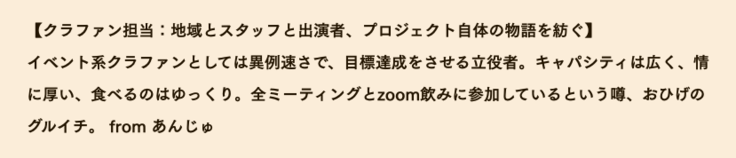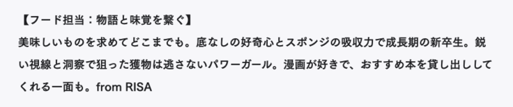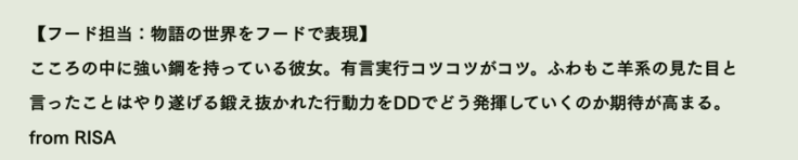 スタッフチームのご紹介です。 見て美味しい、心躍るごはんを提供してくれるFoodStoryチーム。DDの魅力を言語化し、より多くの人に伝えてくれる広報PRチーム、そして、当プロジェクトを更に深い魅力に導いてくれる企画営業チームです!