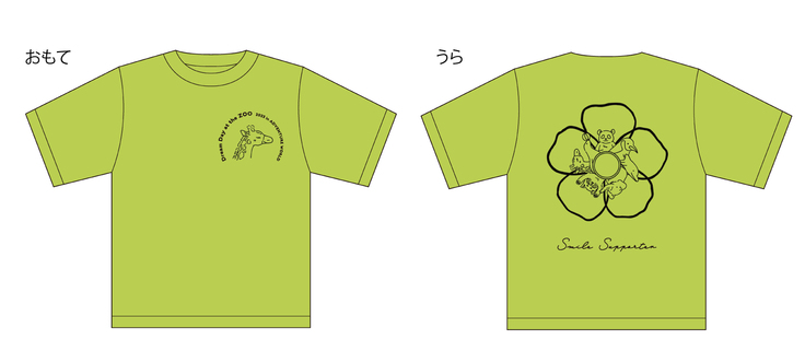 ライトグリーンの優しいカラーのTシャツで、バックのデザインは「1枚の花びら(ヒトや動物)が重なり合う(多様性)ことで1つの【 輪(協力・団結)】を表現いたしました。