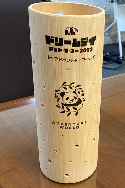 ドリームデイ・アット・ザ・ズーのロゴとパンダのイラストを刻印したものをお送りさせていただきます。