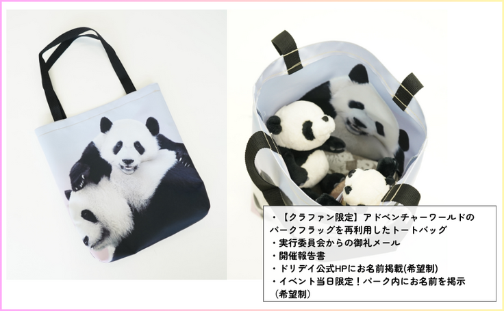 完売していた【クラファン限定】アドベンチャーワールドの“パークフラッグ”を再利用したトートバッグ(パンダ)のリターンを5つ追加いたしました!