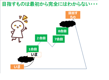 山を登ろうとするとき、麓から頂上まで完全に見えることはありません。雲がかかっていれば見えないし、途中で谷があることはそこまで行ってみないとわかりません。新しい事業を立ち上げるとき、登る山はまだ誰も登ったことのない、地図のない山です。地図のある山と違って、麓にいるときに頂上までの計画を立てることはできません。そのため、まずは登る山を決めて、見通しがいいところまで登ってみて、それから次にどのように進むかを考える、ということが大切になってくると思います。