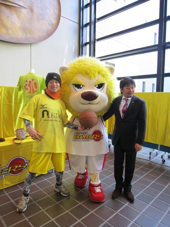 試合開始前には「仙台89ERS」のキャプテン「志村雄彦選手」に元気玉の贈呈セレモニー。
