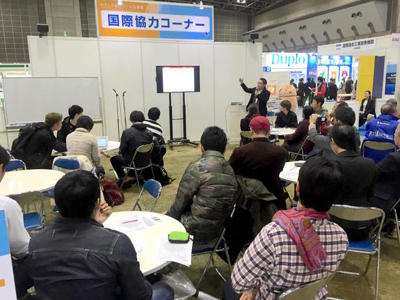 東京ビッグサイトで3日間開催されているエコプロダクツ2015の国際協力コーナーにて本日(12/11)にクライシスマッピングのワークショップ担当としてドローンバード隊長の古橋が登壇しました。