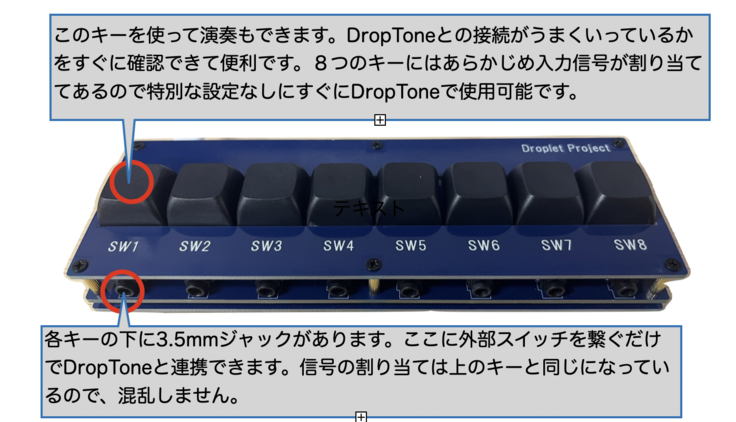 今回、DropToneの性能を最大限に活用するために独自のスイッチインターフェイス(後述)も開発しました。