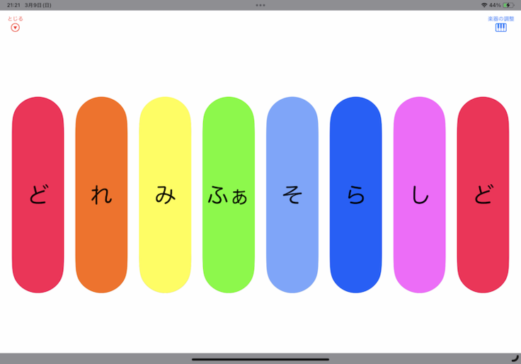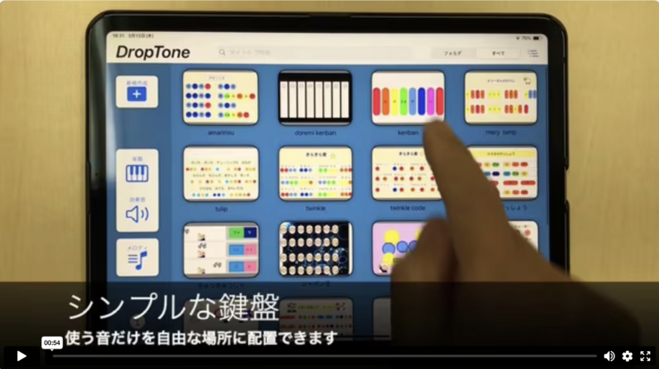 DropToneはiPadの画面上に、音を出すパーツを自由に配置できます。