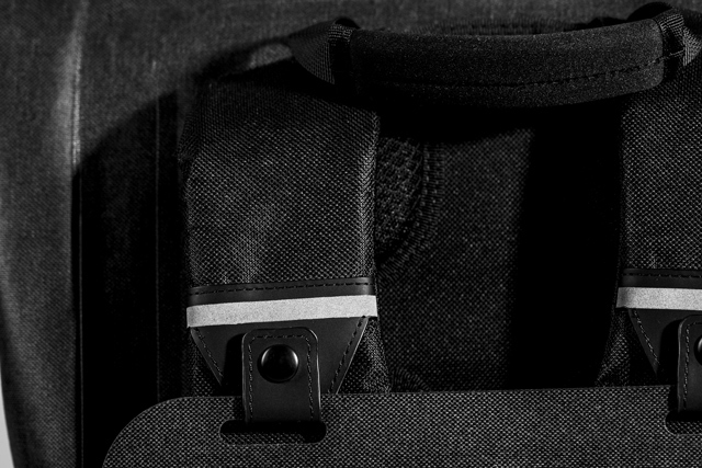 夜間走行時も安心。視認性を高めるリフレクターをバッグ前面に配置。