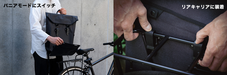 ワンタッチでパニアバッグに、すぐに背負えるバックパックに。