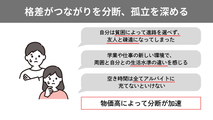 経済的格差がつながりを分断し、孤立が深まっていく